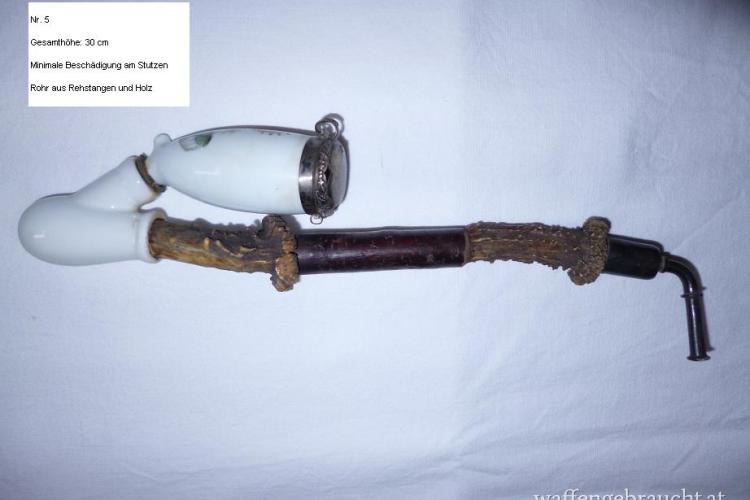 Alte Porzellanpfeife mit Reh-Horn, 30 cm