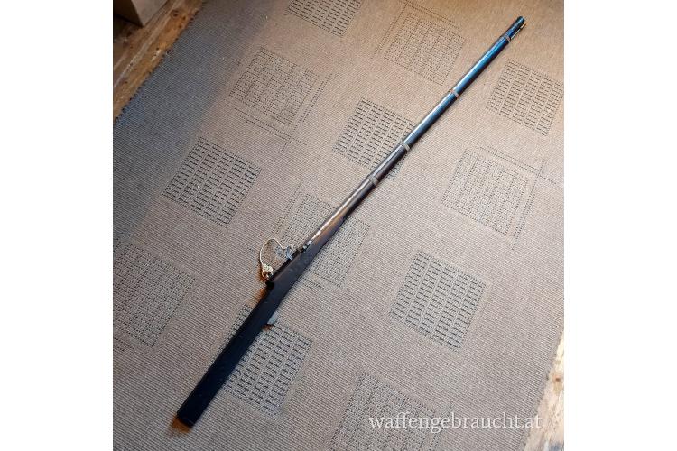 antikes Luntenschloss-Gewehr aus Verlassenschaft, Zustand dem Alter entsprechend siehe Fotos, Schaft überarbeitet (ebonisiert), langer schwerer dickwandiger Lauf vorne trichterförmig geweitet, gemarkt siehe Fotos, Länge 150cm, Versand in A 25,--