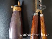 Erbstücke, habe 6 Stück ab a27.- Verschiedene Größere und Kleinere Abzugeben geg Aufpreis, Pulver Flasche klein für Schatulle letztes Bild Kugelzange Cal 44 lang und Rundkugel, verschiedene Leder Kugel Beutel