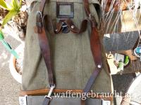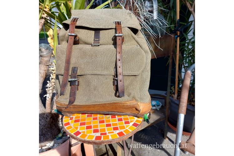 Schweizer Militär-Rucksack, Leinen "Salt & Pepper", ohne Beschädigungen, schöner unbeschädigter Stoffzustand, innen sauber und ohne Gerüche ! alle Riemen vorhanden um 1940, bester Tragekomfort, Versand 15,00