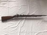 Biete orig. Wänzl-Jägerstutzen, Schloss gestempelt 1859 , Schaft mit seitlicher Stempelung D, Schaftunterseite gestempelt mit FF 1860 . Lauf guter Zustand, Schaft im orig Zustand, nicht abgeschliffen oder rep. dazu das orig. Bajonett, schöner Sammlerzustand, Putzstock fehlt leider, 1 Stück orig. Patrone vorhanden gehört aber nicht zur Auktion.