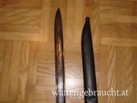 Werndl Säbelbajonett mit Scheide. Leider 2 Dellen in der Scheide und Rostnarbig. Die restliche Beschreibung und den Zustand entnehmen Sie bitte den beigefügten 10 Bilder. Der Privatverkauf erfolgt unter Ausschluss jeglicher Gewährleistung. Bei Versandwunsch, kommen 7.- Euro Versandkosten innerhalb Österreich dazu. (Postversand mit Sendungsverfolgung)