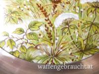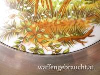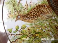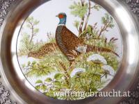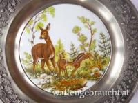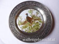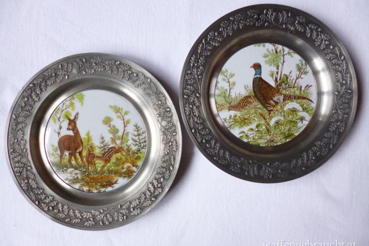 2 Wandteller, Zinn mit Porzellan, Rehe / Fasane