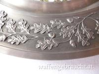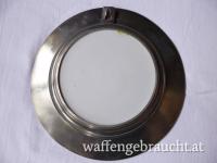 2 Wandteller, Zinn + Porzellan
