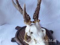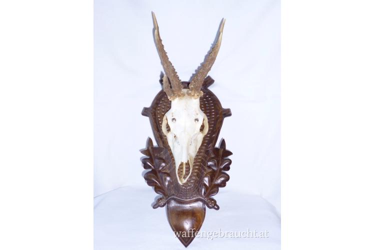 Nr. 5: Abnorme Rehtrophäe auf handgeschnitztem Schild