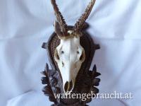 Geweihhöhe 15 cm, auf handgeschnitztem Schild aus Massivholz