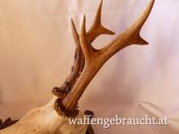 Geweihhöhe 18 cm, auf handgeschnitztem Schild aus Massivholz