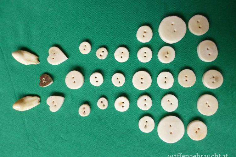 Nr. 9: 28 Hirsch-Horn-Knöpfe + 2 Hirschgrandeln: