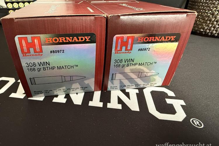 Verkauft werden 100 Schuss der Marke Hornady im Kaliber 308 Win mit 168gr.