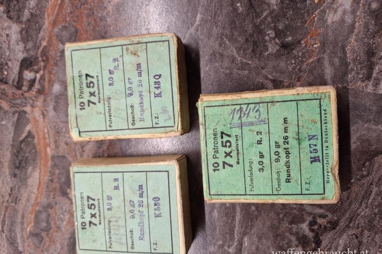 Munition RWS Teilmantel Rundkopf 7x57 9 gr. 5 Stk im Original Karton zu je 10 Stk + 13 Stk. € 95 Rarität