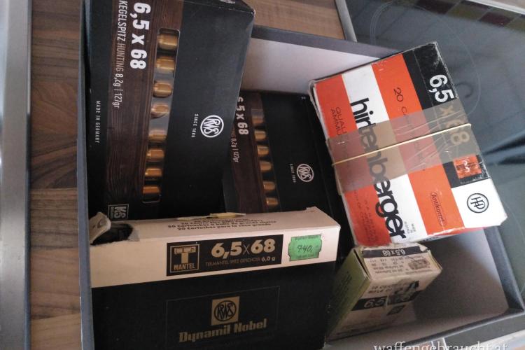 Biete ein Konvolut an 6,5x68 Munition ☝🏻 39 STK Rws KS, 20 Hirtenberger ABC, 10 Lutz Möller+20 Hülsen RWS
