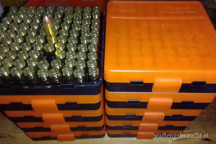 1000 Stk. 9mm mit 124gr FMJ Geschossen in 10 Kunststoffboxen abzugeben.