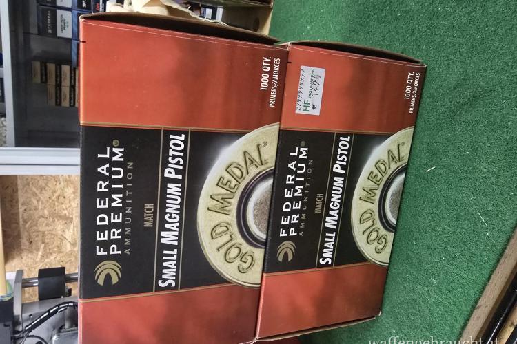 Verkaufe 1500 Stück Zündhütchen Federal GM 200 (Small Magnum Pistol), bestens gelagert im Klimatisierten Kasten. Fixpreis 180,- Euro, nur Abholung in 6020 Innsbruck. Es handelt sich um einen Privatverkauf daher ohne Garantie und Gewährleistung oder Rückgabe.
