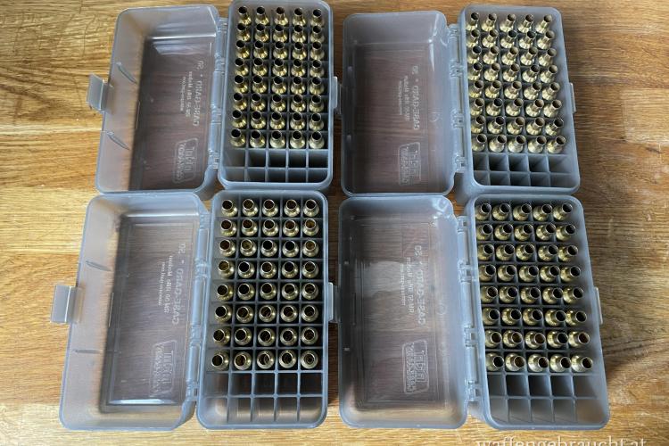 Bei allen Hülsen wurden die Zündhütchen entfernt und sie wurden bereits einmal mit einem L.E.M. Hülsenreiniger gereinigt.