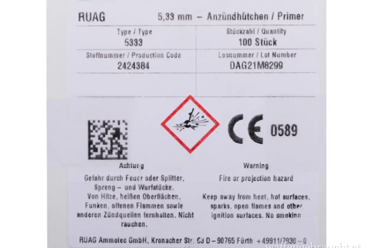 RWS Ambosszündhütchen Large Rifle Magnum/Nr. 5333 SINOXID (Schiebeschachtel) Ø 5,33 mm