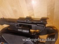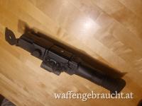 | Zubehör | Montage für Picatinny-Schiene, Akku mit Ladegerät, Infrarotaufsatz, Putztuch, Abdeckkappen |