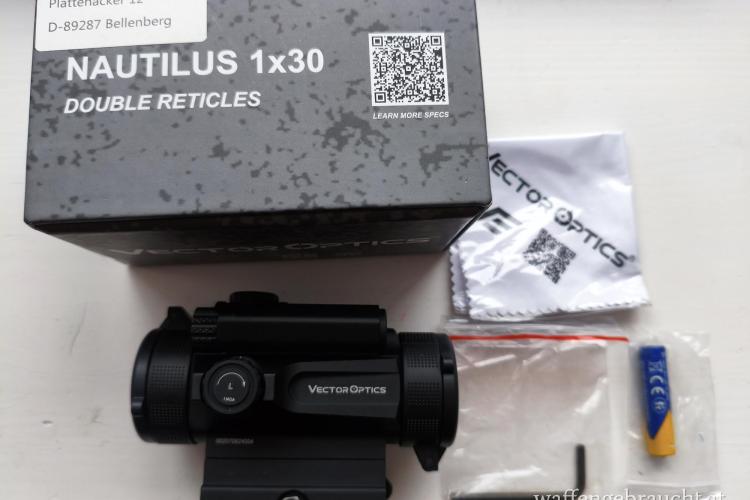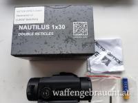 der neue Große Bruder des bekannten Nautilus jetzt mit zwei wählbaren Absehen, 8 manuell wählbaren Helligkeitsstufen, Motion Sensor (Auto Shut off nach 2 Minuten, geht bei erfasster Bewegung automatisch wieder an) und Schnellmontage für 21mm Picatinny Rail