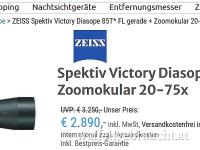| Neupreis | € 3.250,- (€ 2.890,-) Stativ € 399,- Stativkopf € 29,- Behälter für Spektiv |