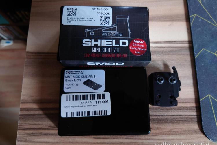 Verkaufe da ich die Glock nur mehr im Roni verwende das Rotpunktvisier Shield Sight Sms2 samt Glock Mos Montageplatte und Picantiny Montageplatte