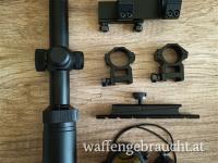 PREMIUM Zielfernrohr 1-4x20 inkl. Montage und Adapter, Mittelrohr 25,4mm, Jagd, Sportschießen, für Großkaliber oder Weitschuss Luftgewehr
