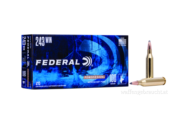 - Die Federal Büchsenmunition .243 Win. 6,50g Spitzer Soft Point Power Shok ist ideal für die Jagd und den Schießsport.