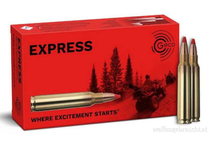 Das GECO Express steht für eine gestreckte Flugbahn, hohe Geschossgeschwindigkeit und extreme Augenblickswirkung - vereint in einer neuartigen GECO Entwicklung. Die auffällig stromlinienförmige Geschossform wird von der GECO Express Tip abgeschlossen. Eine Geschossspitze, welche weite, präzise Schüsse ohne Haltepunktkorrektur ermöglicht. Die hohe Geschossgeschwindigkeit wird bis ins Ziel gehalten und auf Grund der auf Distanz konzipierten Mantelkonstruktion in Energie umgesetzt. Energie, welche die Stücke an den Boden bringt.
