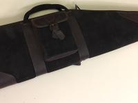 Gewehrtasche Hirschleder 130cm m.Tasche Carabiner dunkelbraun