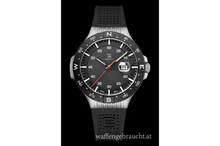 Ein schwarzes Silikonarmband mit der charakteristischen GLOCK RTF-Struktur verleiht dem Gesamtdesign darüber hinaus eine sportliche Note.