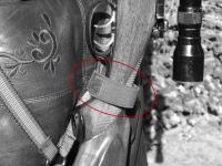 - Zur Stabilisierung der Waffe auf dem Rücken kann bei Bedarf der variabel auf dem Gurtband verschiebbare Fixiergurt (im Lieferumfang enthalten) um den Gewehrkolben geklettet werden