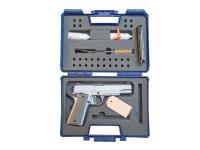 Die Pistole hat einen Koffer, dieser mit Putzzubehör ausgestattet ist.