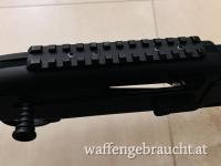 Verbaut sind eine Toni Systems Magazinverlängerung, eine Picatinnyschiene zur Montage von Zubehör (z.B. Optik/Rotpunktvisier) sowie Bolt Shroud Kit.