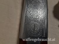 Fixe Chokes in voll und halb,. Waffe verfügt über Ejektoren, und einen Einabzug. Schiebesicherung am Kolbenhals mit Laufwahlfunktion, Basküle mit schöner Werksgravur, Nussholzschaft 35cm mit Pistolengriff, Fischhaut und Gummischaftkappe, gültiger Beschuss. Leichte Gebrauchsspuren am Schaft.