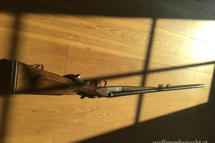 Klassische Ferlacher Doppelflinte, graviert mit Tierstücken und Arabesken