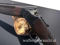 Mit einer Lauflänge von 75 cm bietet diese Bockflinte gute Schussleistung und Treffgenauigkeit. Das dunkle Schaftholz verleiht der Waffe eine klassische, edle Optik.