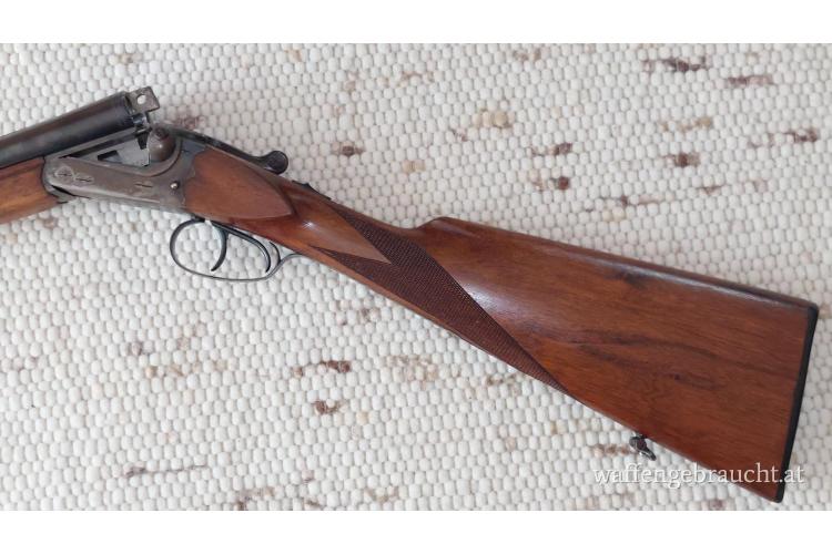 Sehr schöne und elegante Doppelflinte. Englische Schäftung mit Doppelabzug und Ejektoren. Läufe sind ohne Dellen und innen Blank. Die Flinte wurde verhältnismäßig wenig geführt und sehr gut gepflegt.