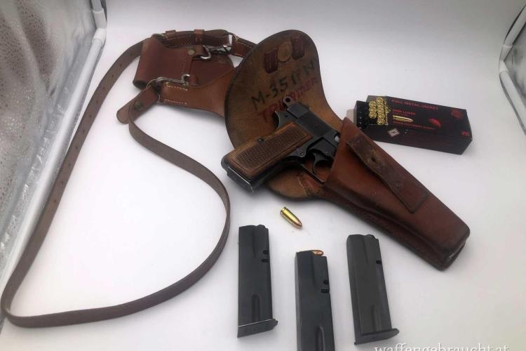 Schöne ehemalige Dinstpistole FN High Power Mod. 1935 Landesgendarmeriekommando Burgenland 9 mm Para mit Holster und 4 Magazinen in sehr gutem Zustand mit Polizeiholter