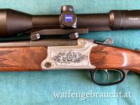 Verkaufe eine wenig geführte Blaser BBF 95 in der Ausführung Luxus mit schön dunkel gemasertem Schaft, Seitenplatten mit Gravur Rosenbukett, Kaliber 308 Win und 12/70.