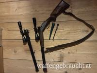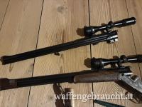 Das Gewehr hat 1 Wechsellauf, wobei auf beiden Läufen ein variables ZF Zeiss 3-9 x36 mit einer Suhler Einhackmontage montiert ist.