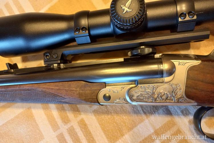 Gutes handliches Gewehr mit perfekter Balance. Gewehr hat Gravuren mit Hirsch und Sau. Eine edle und wunderschöne Waffe.