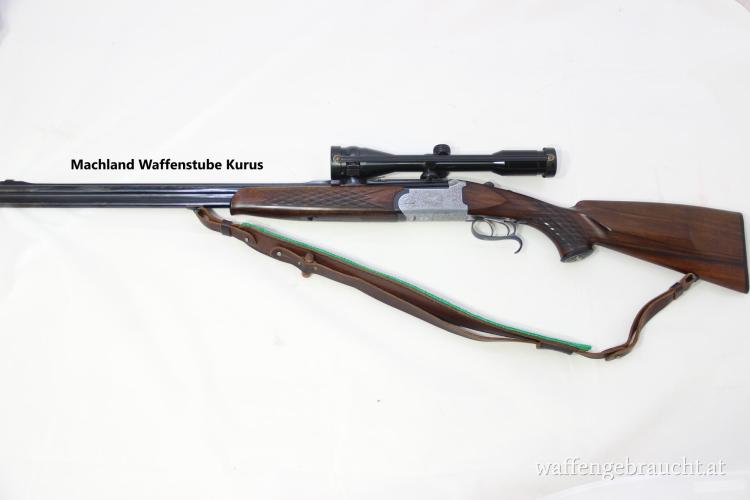 Zoli Bockbüchsflinte Modell Luxus, Kaliber 6,5x57R-20/76, Lauflänge 65cm, Schwenkmontage, Swarovski Habicht 6×42, Absehen 1A, Augenabstand 28,5cm, Monogramplatte, Riemen, sehr guter Zustand, sehr schönes Schaftholz, Fingerhaken am Abzugsbügel, schöne Gravur, Verkauf im Kundenauftrag