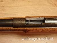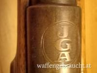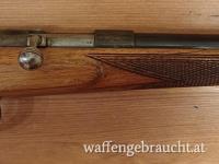 Elegantes und leichtes Kleinkaliber-Gewehr, Einzellader, Produziert vor 1945 mit Beschusszeichen aus Belgien. Am System findet sich das Firmenlogo "JGA" für "J.G. Anschütz", das so nur bis 1945 verwendet wurde.