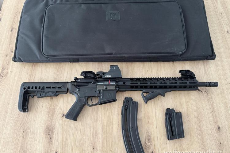 Im Zubehör enthalten sind 1000 Schuss Geco 22lr. Semi auto, 30 Schuss Magazin, 10 Schuss Magazin, Bore Snake, Tasche.