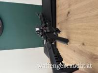 Montiert ist ein Sightmark Ultra Shot R-Spec Reflexvisier umschaltbar auf Rot und Grün, die original Flip-Up Visiere sind auf einer 45° Schiene. Ebenso ist ein Handgriff montiert.