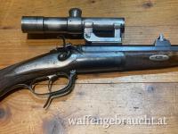 Ein sehr aufwändig gefertigtes schönes Kindergewehr mit Kipplaufsystem und Rückstecher, Baujahr 1912. Nach dem Weltkrieg wurde offensichtlich ein russisches Scharfschützenzielfernrohr nachgerüstet. Das Gewehr ist mit dem Kind mitgewachsen, denn der Schaft wurde einmal verlängert. Der Laufzustand ist noch sehr gut und die Optik ist klar. Geschossen habe ich nie damit, es war nur in meiner Sammlung, aber theoretisch müsste es funktionieren. Ein Probeschießen ist auf Wunsch möglich.
