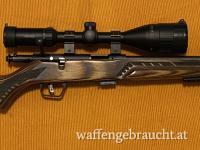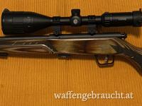 Lauflänge 18 Zoll, sehr präzise, auch mit günstiger Munition. Laminat-Schaft, Mündungsgewinde ½-28, einstellbarer AccuTrigger, 5-Schuss-Magazin, Schiebesicherung, Montageaufnahme 2-Piece Weaver Bases,