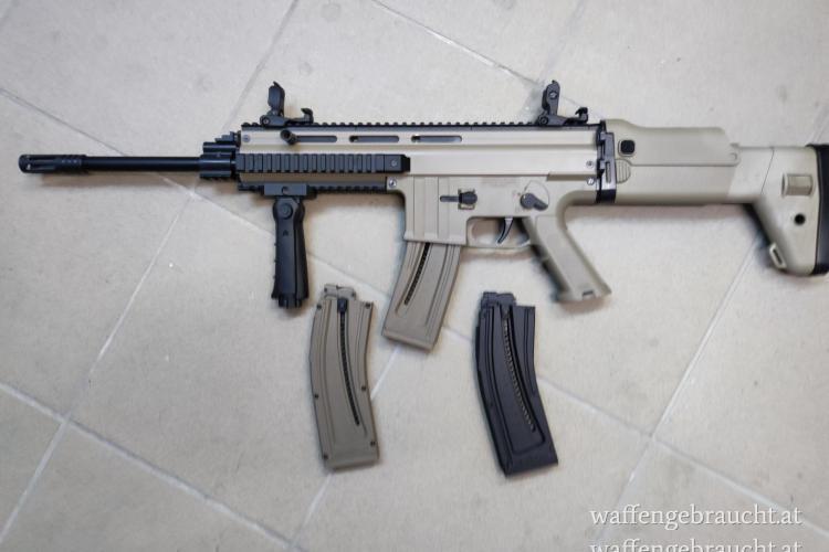 Schöner KK Halbautomat mit 3 Magazinen (20 Schuß) . Klappschaft.