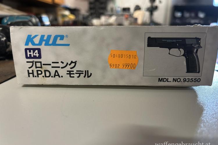 Verkaufe hier ein tolles Sammlerstück aus den 90er Jahren (vermutlich 1995) - eine KHC Browning H.P.D.A. Federdruck Softair Pistole in Original Verpackung.