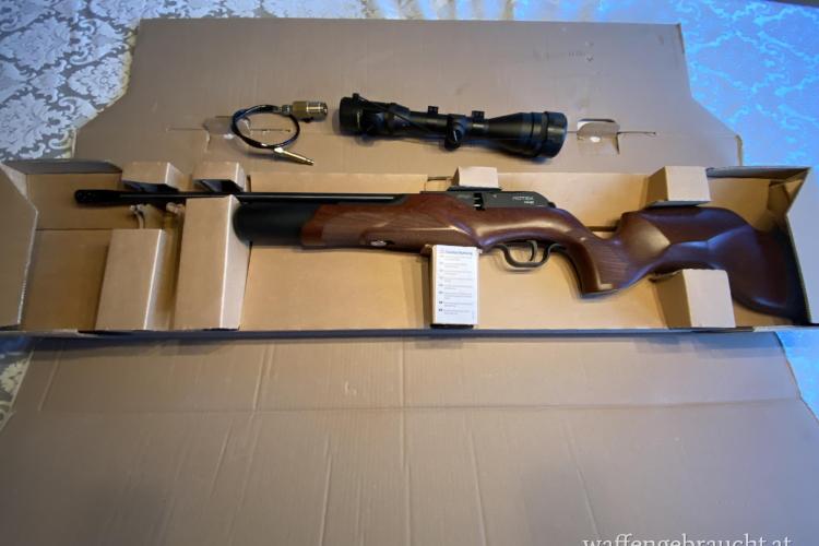 Waffe ist, neben dem Kratzer (siehe Foto) fast wie neu. Kommt mit Zielfernrohr und Pressluftflasche. Falls nicht gewünscht, kann man auch nur über die Waffe reden. Der Preis von 600 Euro versteht sich inkl. Pressluftflasche und Zielfernrohr. Die Waffe wurde Anfang November 2024 gekauft, hat also noch fast ein Jahr Garantie.