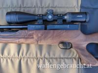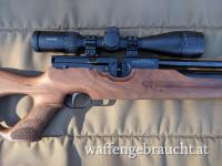 Neuwertiges Weihrauch HW 100 T mit Nussbaumholz-Lochschaft, zweistufig verstellbarer Matchabzug. Inkl 2 Magazintrommeln x 14 Schuss, Flaschenadapter, Entlüftungsschraube.