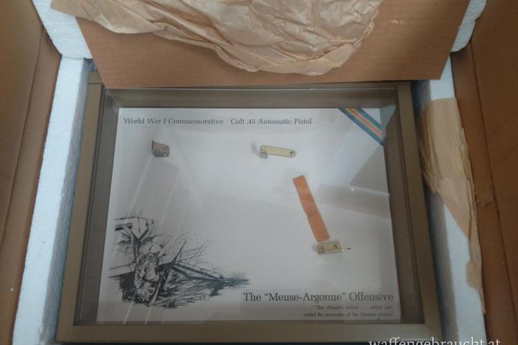 Originale COLT COMEMMORATIVE WWI "MEUSE - ARGONNE OFFENSIVE" Box - Vitrine für den Colt 1911 im Original Karton. Inklusive original Beschreibung. TOP ZUSTAND!!